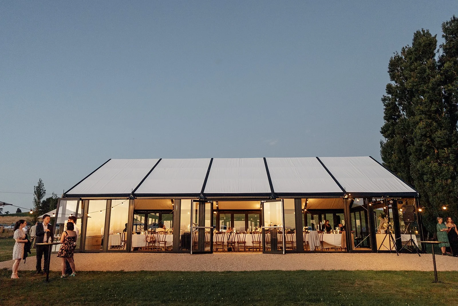 Our custom build glasshouse marquee, set on 1 acre of lawns surrounded by beautiful countryside.